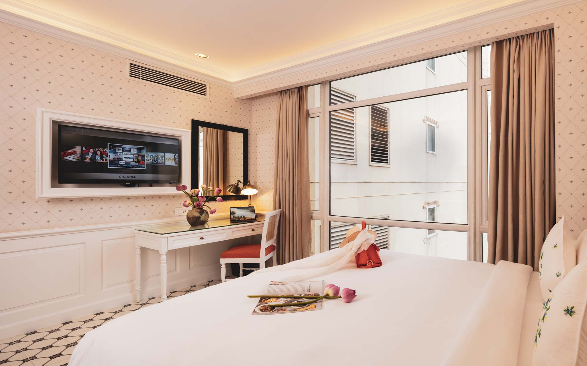 Welcome to the best four-star hotel in Ho Chi Minh City. The hotel offers luxurious and elegant furnishings. All accommodation is decorated with French colonial touches. It features a flat-screen TV, and free Wifi. The luxury marble bathroom includes a spa tub, bathrobes, and exclusive toiletries.